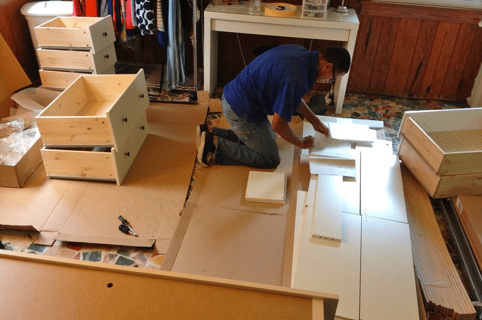 يتم تفكيك الأثاث قطعة قطعة مع وضع البراغي والمسامير في أكياس صغيرة مُلصق عليها اسم القطعة لتجنب فقدانها.