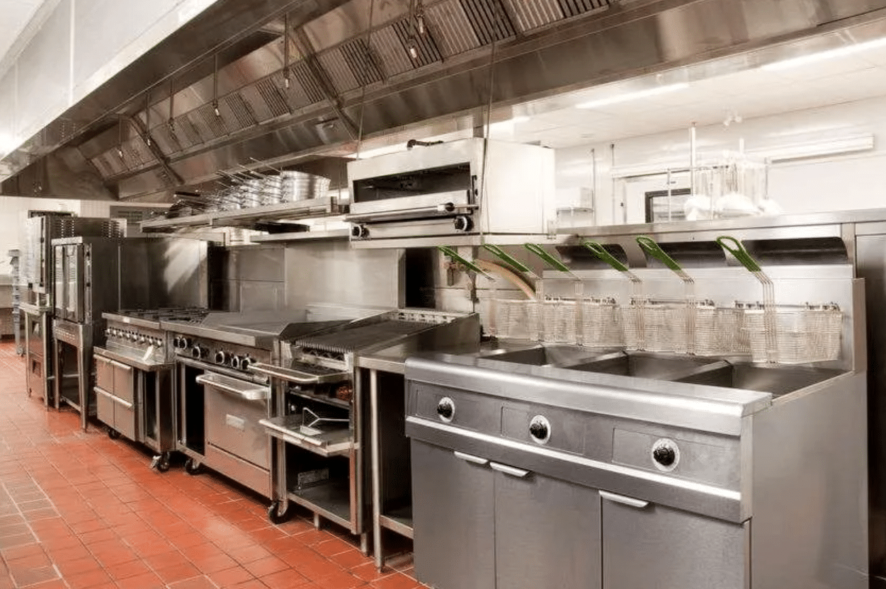 لا يمكن لمطعم أن يعمل بكفاءة دون وجود غسالات صحون صناعية، طاولات ستانلس ستيل للتقطيع، وأرفف لتخزين المواد الغذائية بشكل منظم.